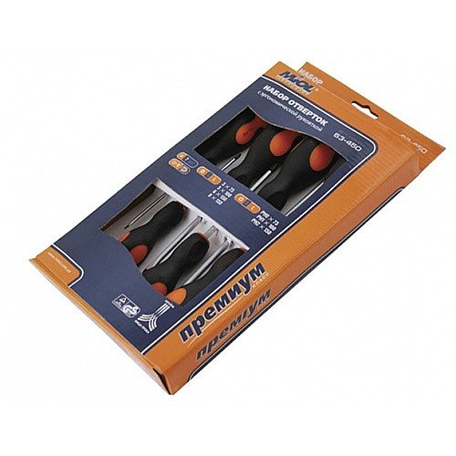 • Типоразмеры отверток в наборе: SL3×75, SL5×100, SL6×150, SL8×150, РН0×75, РН1×100, РН2×150