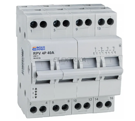 Перемикач  мережа-генератор I-0-II (трьохпозиційний) призначений для ручного керування електроспоживання мережі від 220 або від генератора. Перемикач I-0-II ще називають перекидним або реверсивним рубильником. Перекидний рубильник служить для забезпечення резервного живлення. По суті це перемикач з основного живлення на резервне (генератор, інвертор). У використанні перекидного рубильника немає ризику розмикання через припинення подачі електроживлення: він вимикає та ізолює як первинні ланцюги електроживлення, так і ланцюги резервного джерела живлення. При нижньому положенні живлення навантаження виконується від першого введення, середнє положення відключає живлення, верхнє положення проводить живлення навантаження від другого введення. Відповідно перемикання проводиться через нульове положення, що гарантує безпечність від короткого замикання між звичайною та резервною мережею.